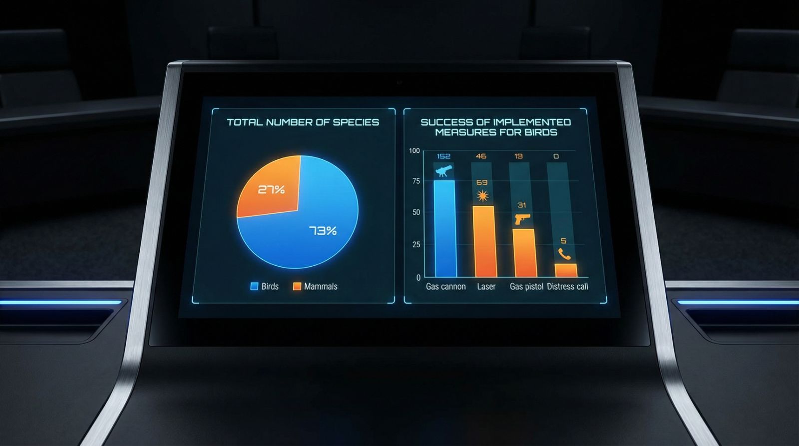 The WLMS module delivers comprehensive statistics and analytics for all wildlife-related activities on the airside. The system automatically collects, classifies, and visualizes data, enabling airports not only to respond to wildlife events but to predict and prevent them through accurate, real-time insights.